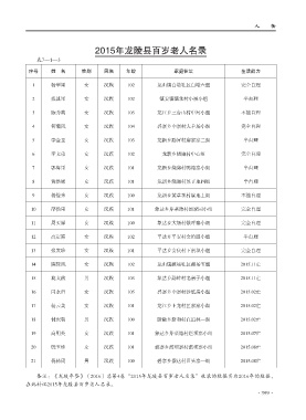 备注:《龙陵年鉴》(2016)总第4卷“2015年龙陵县百岁老人名录”收录的数据实为2016年的数据,