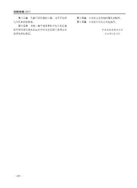 龙陵年鉴 2017 第十二条 凡被召回管理的干部,当年不得评 第十四条 本办法由县委组织部负责解释。 先评优和提拔使用。 第十五条 本办法自印发之日起施行。 第十三条 其他一般干部及事业单位不胜任现 职干部召回管理办法由各单位及主管部门参照本办 中共龙陵县委办公室 法结合实际制定。 2016年9月18日 ·428·