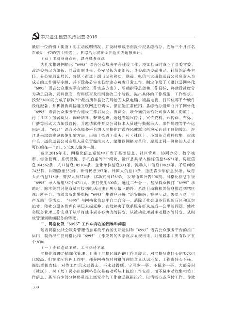运用,制约澄江县网格化和“6995”工作发展的因素逐步显现出来,归纳起来主要有以下五
