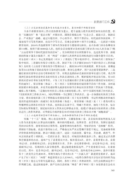 教育培训。2016年共选派领导干部78名参加省市专题培训32班次;县直各部门举办各种培训