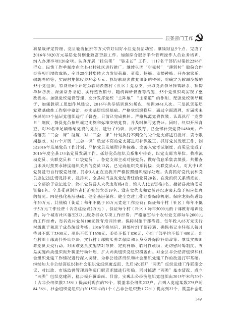 “两类”组织党建科,稳步提升覆盖面。目前,实现非公经济组织党组织由2015年末的20个
