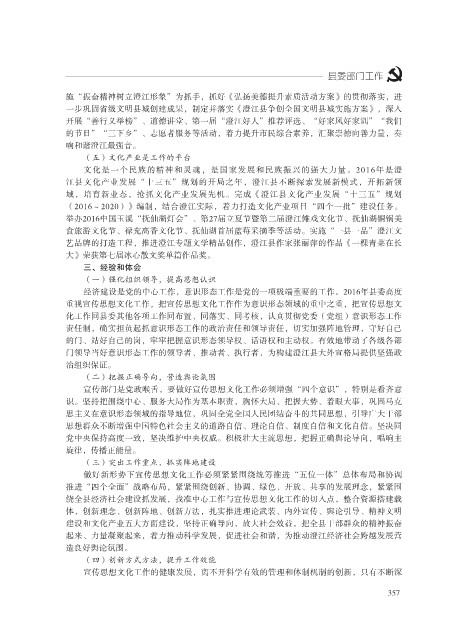 文化是一个民族的精神和灵魂,是国家发展和民族振兴的强大力量。2016年是澄