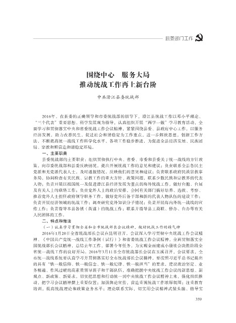 传工作;负责指导本县各镇(街道)的统战工作;联系并指导县工商联、侨办、台办等有关