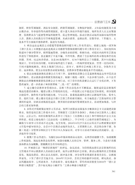 员,组织力量,建立健全完善适合澄江宗教工作的相关制度,有力地促进了宗教场所民主管