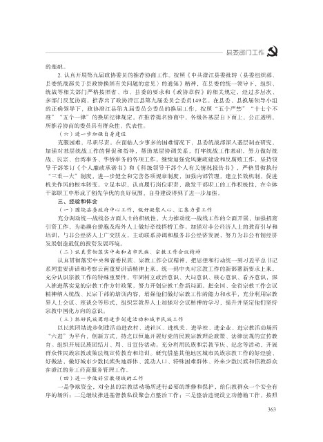 克服困难,尽职尽责。在面临人少事多的困难情况下,县委统战部深入基层调查研究,