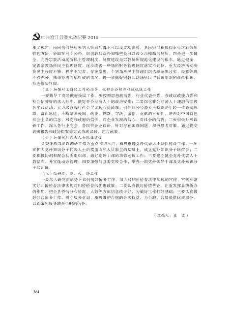 不够充分,选举办法简单粗放的情况。进一步做好宗教活动场所民主管理组织的规范管理,