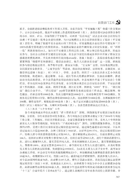 法治文化品牌建设,在全县营造学法用法的良好氛围;在县电视台开通《平安法治》专题