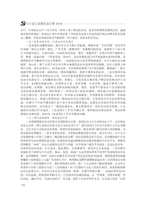 例进行法律宣传。2016年《法治澄江》栏目共播出10期。