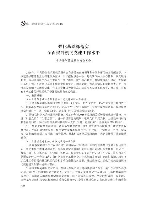 2016年,中共澄江县直属机关委员会在县委的正确领导和各级各部门的支持配合下,以