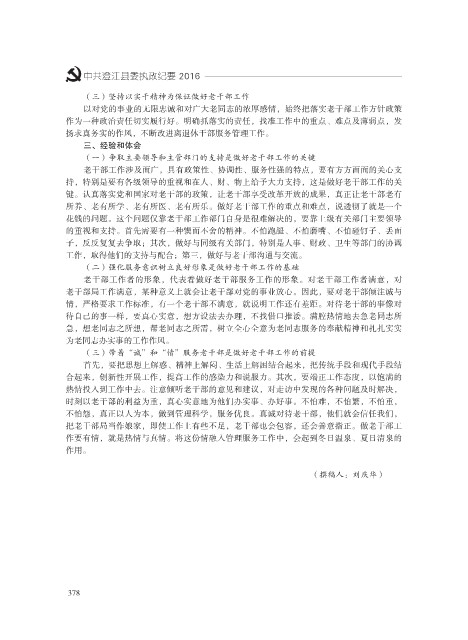 工作,取得他们的支持与配合;第三,做好与老干部沟通与交流。