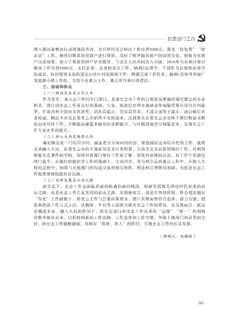 持,将史志工作做精做强,发挥好“资政、育人”的作用,实现史志工作的长足发展。