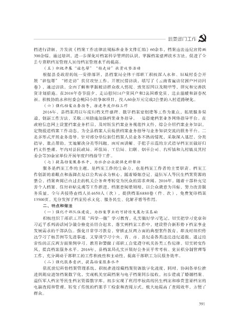 2016年,县档案局以年度归档文件整理、数字档案室创建等工作为重点,拓展服务渠