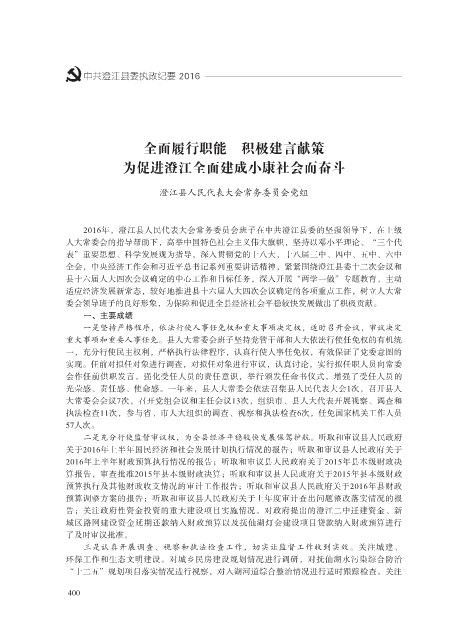 2016年,澄江县人民代表大会常务委员会班子在中共澄江县委的坚强领导下,在上级
