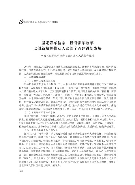 2016年,澄江县人武部坚决贯彻落实上级的指示要求,按照固本培元铸军魂、强军尚武