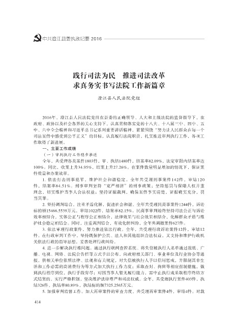 2016年,澄江县人民法院党组在县委的正确领导、人大和上级法院的监督指导下,在