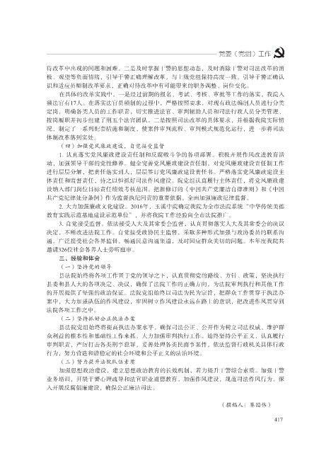 体责任和监督责任,持之以恒抓好司法作风建设。院党组认真履行主体责任,将党风廉政建