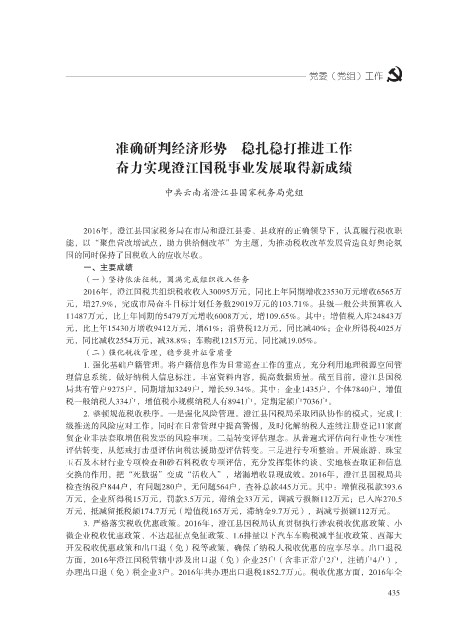 2016年,澄江县国家税务局在市局和澄江县委、县政府的正确领导下,认真履行税收职