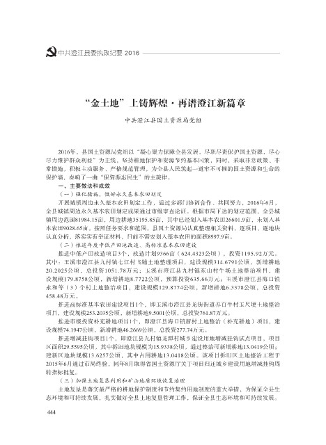 推进高标准基本农田建设项目1个,即玉溪市澄江县龙街街道养百牛村玉尺埂土地整治