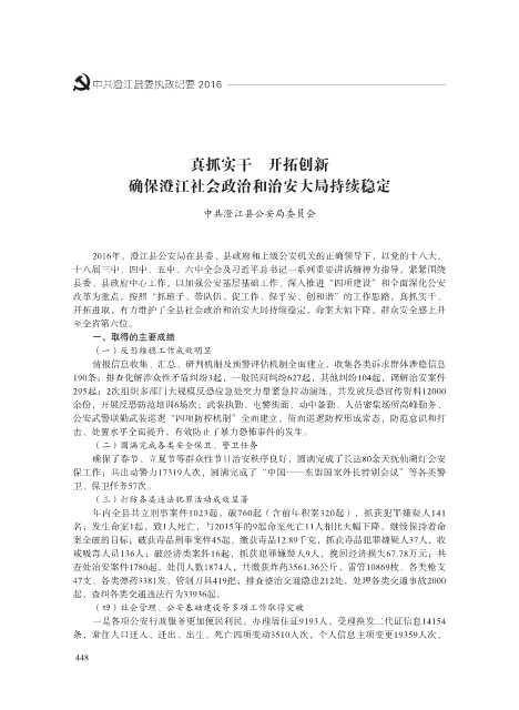 2016年,澄江县公安局在县委、县政府和上级公安机关的正确领导下,以党的十八大,