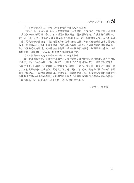 (三)扎实抓好党建工作是做好公安工作的有力推手