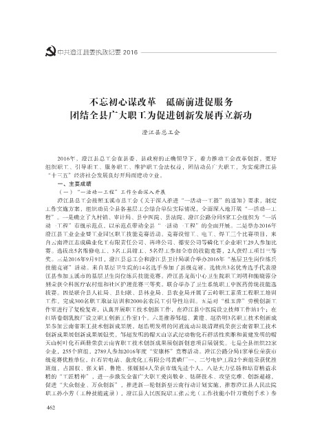 2016年,澄江县总工会在县委、县政府的正确领导下,着力推动工会改革创新,更好