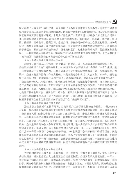 统计、企业工资集体协商工作夯实基础。三是开展建会和农民工入会工作。2016年,新增基