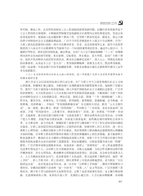 导,筑牢广大职工团结奋斗的思想基础。深入开展中国特色社会主义理想信念教育,广泛开