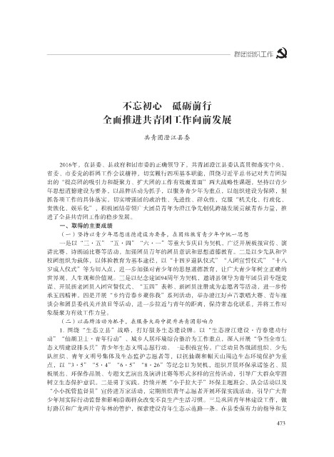 1.… 围绕“生态立县”战略,打好服务生态建设牌。以“生态澄江建设·青春建功行