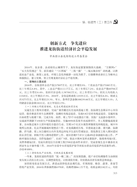 2016年,在县委、县政府的正确领导下,龙街街道紧紧围绕四大战略、“互联网+”