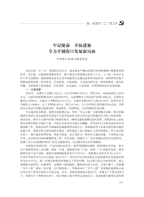 任务,在县委、县政府的坚强领导下,海口镇全面贯彻落实党的十八大、十八届三中四中五