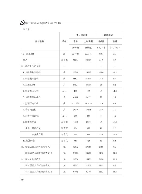 1.…大牲畜期末存栏 头 16269 16965 -696 -4.1