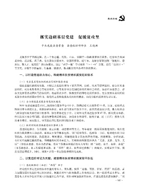 进党建业绩提升。同时,增派 4名第一书记强化整顿转化成效。