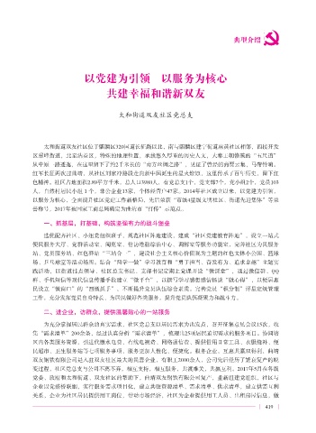 以服务为核心,全面提升社区党建工作新格局,先后荣获“市级4星级文明社区、街道先进集体”等荣