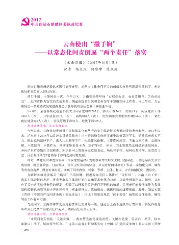 究”,把问责作为管党治党的利器,倒逼各级党组织和党员领导干部做到守土有责、守土尽责,为云