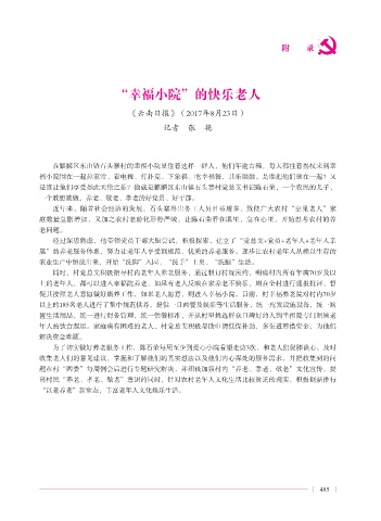 上的老年人,都可以进入幸福院养老,如果有老人反映在家养老不快乐,则在全村进行通报批评,督