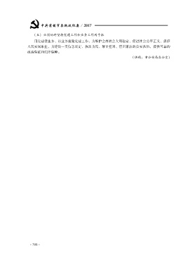 中共清镇市委执政纪要 /2017 (五)必须始终坚持党建工作和业务工作两手抓 用党建促业务、以业务检验党建工作,为维护全市社会大局稳定、促进社会公平正义、保障 人民安居乐业,为建设一支信念坚定、执法为民、敢于担当、清正廉洁的公安队伍,提供可靠的 政治保证和纪律保障。 (供稿:市公安局办公室) · · 3 8 9