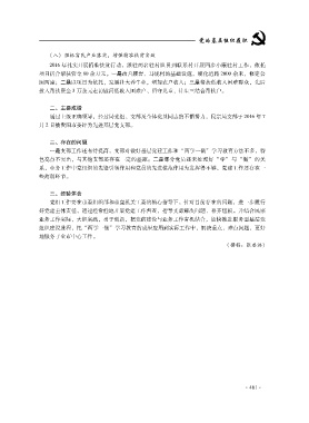 色亮点不突出,与其他支部还存在一定的差距;二是部分党员还未处理好 “学”与 “做”的关