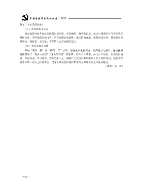 优勇争第一成为工作的常态,用党员及党组织的作用发挥是保障党建工作扎实推进。