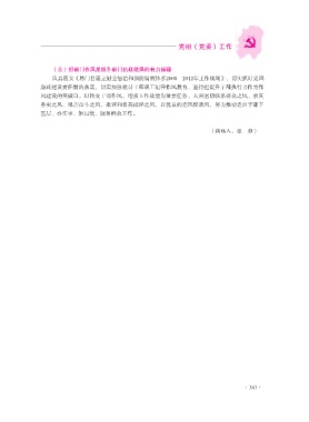 党组(党委)工作 (三)抓部门作风是提升部门执政效果的有力保障 认真落实《易门县建立健全惩治和预防腐败体系2008—2012年工作规划》,切实抓好党风 廉政建设责任制的落实,切实加强党员干部职工纪律作风教育,坚持把提升干部执行力作为作 风建设的突破口,以转变干部作风、增强工作效能为重要任务,大兴密切联系群众之风、求真 务实之风、艰苦奋斗之风、批评和自我批评之风,以优良的党风促政风,努力推动党员干部下 基层、办实事、解民忧、服务群众工作。 (撰稿人:张 静) ·367·