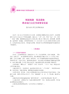 2016年,县文联围绕县委、县政府的中心工作,结合文联实际,发挥自身优势,“深入