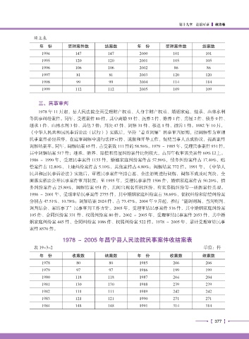 姻家庭纠纷案 445 件、合同纠纷案 1086 件、权属纠纷案 522 件。1978 ~ 2005 年,累计受理审结民事