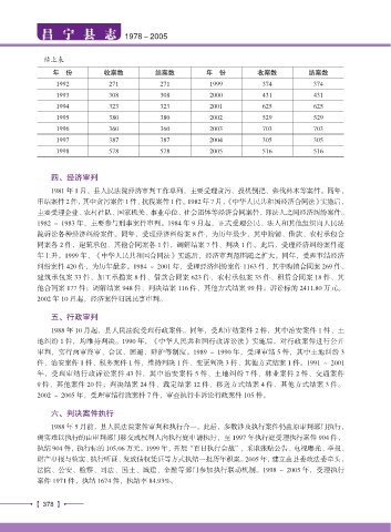 1988 年 10 月起,县人民法院受理行政案件。同年,受理审结案件 2 件,其中治安案件 1 件、土