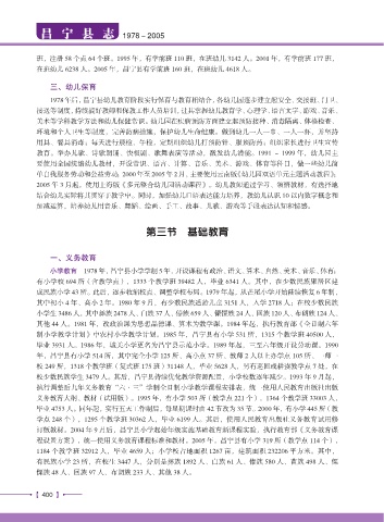 义务教育大纲、教材(试用版)。1995 年,有小学 503 所(教学点 221 个),1364 个教学班 33003 人,