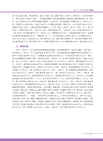 育事业费 6294.20 万元,群众捐资助学 1256.62 万元,收取学杂费 190.50 万元。1995 年后,学杂费收