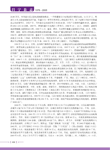 县有线电视网,并网用户 720 户。同年起,实施广播电视“村村通”工程,至 2002 年建成 26 座。
