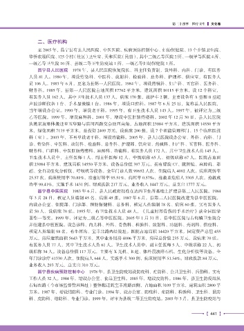 人员 81 人。1980 年,增设传染科、中医科、放射科、检验科、总务科、护理部、供应室,有医务人