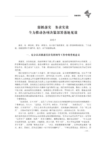 抓落实,从各级党委、政府和领导干部工作方面讲,就是抓党和国家各项方针政策、工