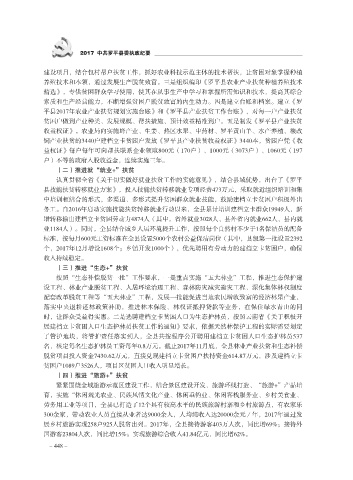展乡村旅游实现258户925人脱贫出列。2017年,全县接待游客403万人次,同比增69%;接待外
