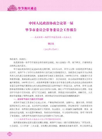 (一)政协毕节地区工委成立以来工作开展的基本情况